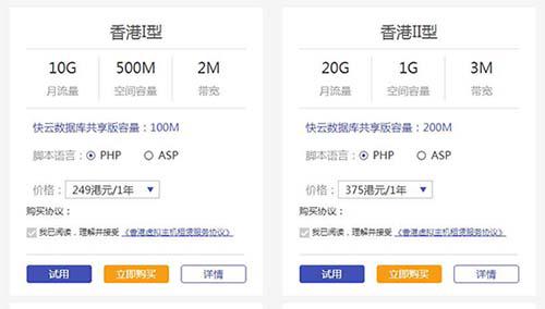 論壇在初期時,基本沒有什么訪問量,也沒有會員,所以這個時候?qū)W(wǎng)站主機的要求會比較少,只要一般的景安香港主機基本便可滿足我們的需求,這里給大家推薦香港I型、香港II型兩款云主機,如下圖所示: