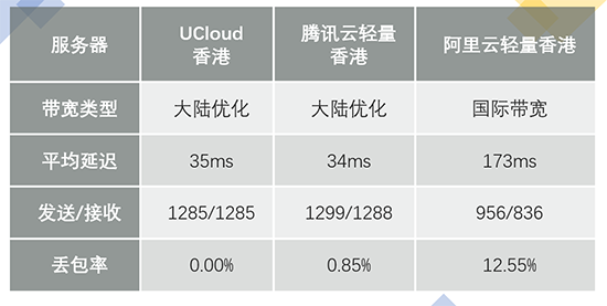 阿里云將對大陸優(yōu)化的鏈路劃入了精品EIP范疇,以極高的價格(3元/G出售),輕量從國內(nèi)的訪問是非常差的。UCloud和騰訊云的優(yōu)化鏈路都是相近的CN2+直連組合,此處測試結果顯示騰訊云在網(wǎng)絡上穩(wěn)定性不如UCloud,原因可能是其輕量產(chǎn)品初期高帶寬銷售的策略導致CN2帶寬冗余不足。對于網(wǎng)站這樣小流量、高穩(wěn)定性需求的場景UCloud的香港地域優(yōu)化鏈路效果會更好一些。