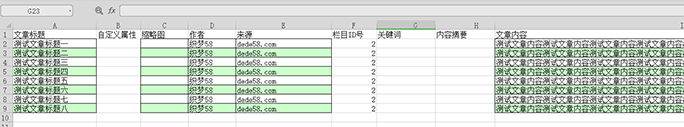 經(jīng)小編測試,一次最多可以導(dǎo)入1萬篇文章左右,1萬篇文章只需要幾分鐘即可(Excel表模板如下圖所示):