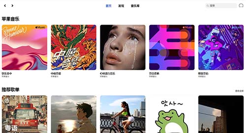 首頁可以看到來自Apple Music的推薦、歌單推薦、新專速遞、排行榜等等。在“發(fā)現(xiàn)”中可以找到更多音樂歌單,點擊“…”號可以選擇更多篩選因素,這個跟網易yun是完全一樣的!播放音樂就會在最下面顯示出播放條。