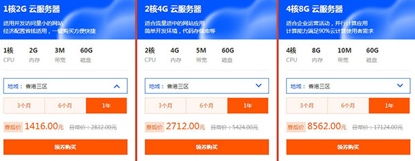 從活動(dòng)中了解到小鳥云新春采購活動(dòng),香港云服務(wù)器共有三款(如下圖所示)!本次活動(dòng)中,小鳥云1核2G云服務(wù)器配置活動(dòng)價(jià)1416元/年起;2核4G服務(wù)器配置活動(dòng)價(jià)2712元/年起;4核8G云服務(wù)器配置活動(dòng)價(jià)8562元/年起;