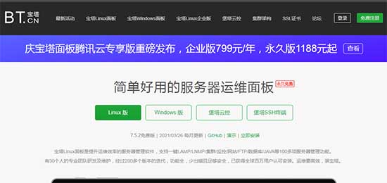網(wǎng)站描述:寶塔面板是網(wǎng)站云服務(wù)器管理軟件,業(yè)內(nèi)稱其為服務(wù)器運(yùn)維助手,可以提高運(yùn)維的工作效率。寶塔面板主要產(chǎn)品有:寶塔Linux面板、寶塔Windows面板、堡塔云控平臺(tái)、堡塔SSH終端。各個(gè)產(chǎn)品組合使用可以實(shí)現(xiàn)云服務(wù)環(huán)境一鍵配置、網(wǎng)站程序安裝、網(wǎng)站各項(xiàng)指示分析,可以實(shí)時(shí)了解服務(wù)器資源使用情況。支持一鍵LAMP/LNMP/集群/監(jiān)控/網(wǎng)站/FTP/數(shù)據(jù)庫/JAVA等100多項(xiàng)服務(wù)器管理功能。
