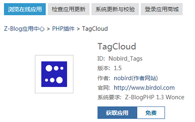 在ZBlogPHP應(yīng)用中心搜索“TagCloud”插件,這個插件是鳥兒網(wǎng)絡(luò)在2014年的時候制作,N年沒有更新過了!不過,這個插件可以實現(xiàn)在獨(dú)立頁面顯示所有網(wǎng)站Tags標(biāo)簽(如下圖所示):