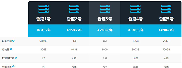 其中最便宜的是香港 1 號(hào)主機(jī)(網(wǎng)頁空間 500MB、月流量 10GB、可放 1 個(gè)網(wǎng)站)原價(jià) 88 元/年,使用優(yōu)惠碼僅需 61.6 元/年。最貴是香港 5 號(hào)主機(jī)(網(wǎng)頁空間 20GB、月流量 600GB、可放無限個(gè)網(wǎng)站)原價(jià) 898 元/年,使用優(yōu)惠碼僅需 628.6 元/年。不過對(duì)于新手站長而言,老古建議購買香港 2 號(hào)主機(jī)比較劃算,配置不錯(cuò),價(jià)格也合適,優(yōu)惠價(jià)僅需 110.6 元/年,可以建立無限個(gè)博客網(wǎng)站。