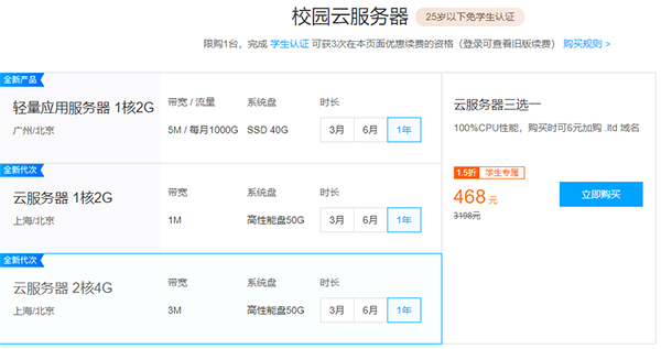 如上圖所示,學生(25歲以下免學生認證)專享的騰訊云服務器有3款,目前都參與了優(yōu)惠促銷活動,具體優(yōu)惠情況及價格如下: